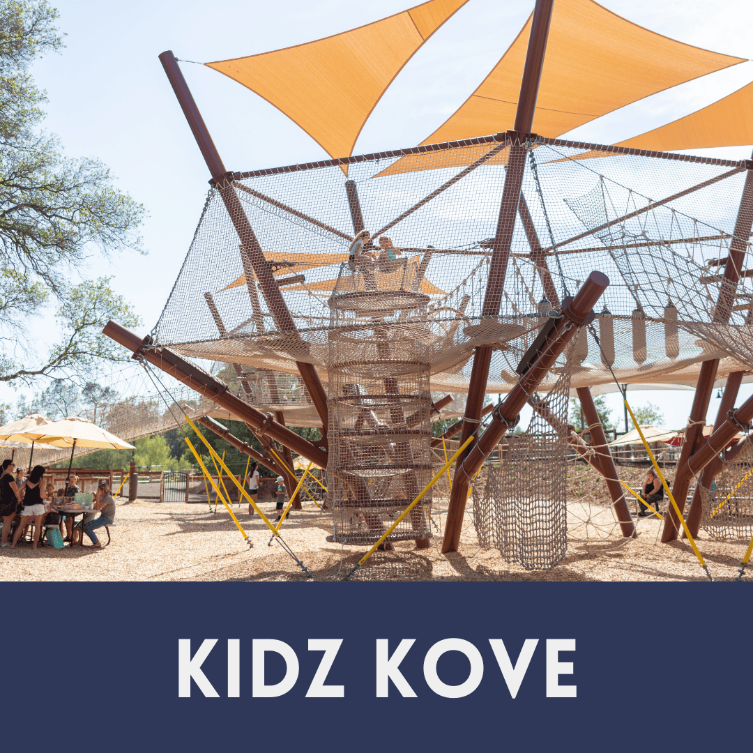 Kidz Kove is designed especially for kids ages 3 to 13 and is located adjacent to the quarry. Tickets, if you do not already have them, are available to purchase at the ticket booth and are only required for children wishing to adventure (no charge for supervising parents/guardians). The enclosed netted play structure includes lots of fun challenges to swing and balance on, and a floor with lots of bounce - kids love it! Below the structure you'll find mini-ziplines and lots of space to run and play. More Info